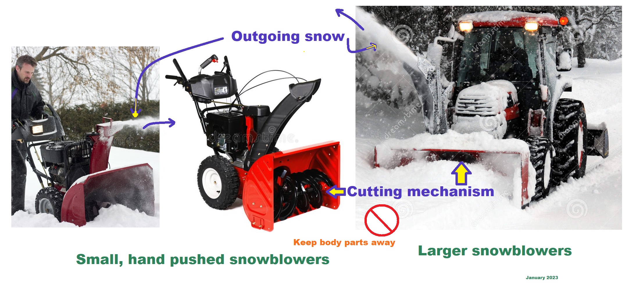 Before going any further, there is a necessary degree of humility. For the sake of illustration, a bit about my background includes awareness of a wide range of technologies, reference for instance products selected and made available with pictures, and brief selling points through ETIS websites. Notwithstanding, putting together in the mind's eye the basic mechanisms of snowblowers and dangerous possible scenarios, may have been tenuously present, especially given when you say snowblower, the thoughts are just blowing snow to the side. Some of what has been learned thus far, I will try to share in easy to understand language, coupled with safety tips in general. In the hopes that during this winter, and those in the future, the possibility of injury can be minimized.